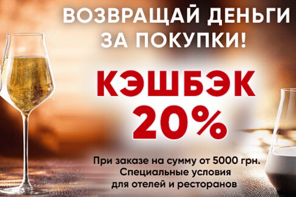 Кэшбэк 20% при заказе на сумму от 5000 грн.